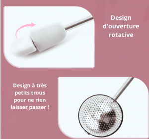 Idéal pour le thé, mais également pour infuser herbes aromatiques ou épices dans vos bouillons. Il peut aussi servir de saupoudreuse pour sucre glace ou cacao sur vos pâtisseries.